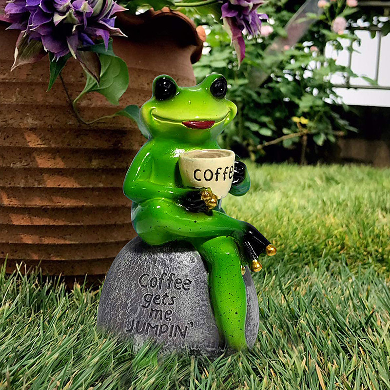 Songlake Creative Cute Frog Statue Garden Frog Drinking Coffee Resin Statuette Craft Decoration Sculpture Indoor Outdoor Garden Decoration