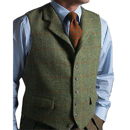 Per uomo Gilet in tweed Gilet Formale Matrimonio Vacanza Affari Punk Vintage Primavera Autunno Tasca Bottoni Poliestere Confortevole Spina di Pesce Monopetto Scollo a V Vestibilità aderente Nero Vino