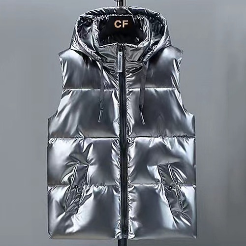 Per uomo Gilet imbottito Gilet Vacanza Quotidiano Data Moda Casual Autunno Inverno Tasca Poliestere Caldo Confortevole Tinta unica Cerniera Con Cappuccio Vestibilità regolare Argento Nero Gilet