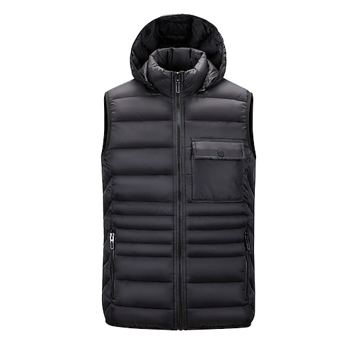 Per uomo Gilet imbottito Imbottito Gilet Gilet trapuntato Giornaliero Appuntamento Da mare Di tendenza Informale Autunno inverno Tasche Poliestere Tenere al caldo Comodo Liscio Cerniera Con cappuccio