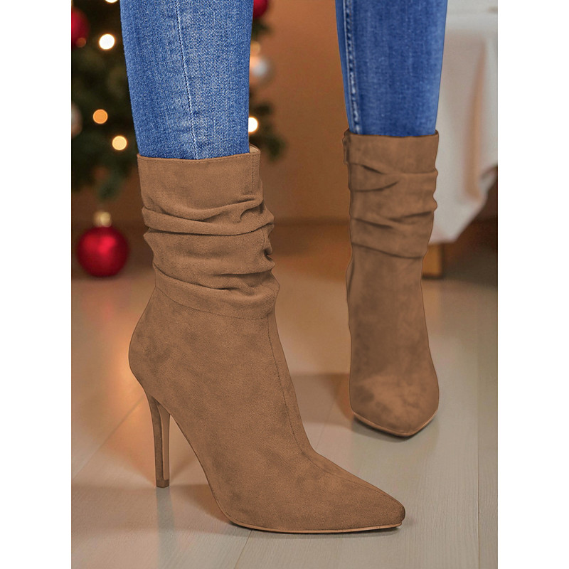 Women's Burgundy Suede Slouchy Boots - Stylish Pointed Toe, High Heel Fashion Boots with Ruched Design for Daily and Party Wear, Perfect for Fall and Winter