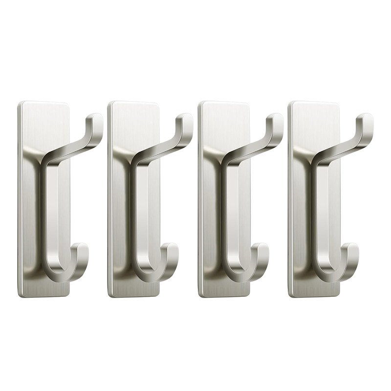 JORDAN&JUDY No-Drill Strong Adhesive Hooks, 4-Pack, Stainless Steel, Damage-Free, Over-Door Storage, Silver