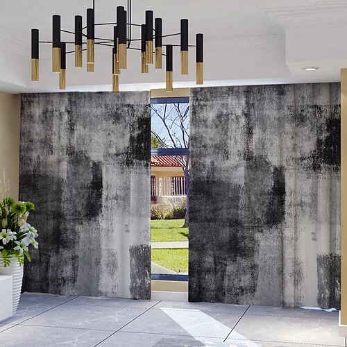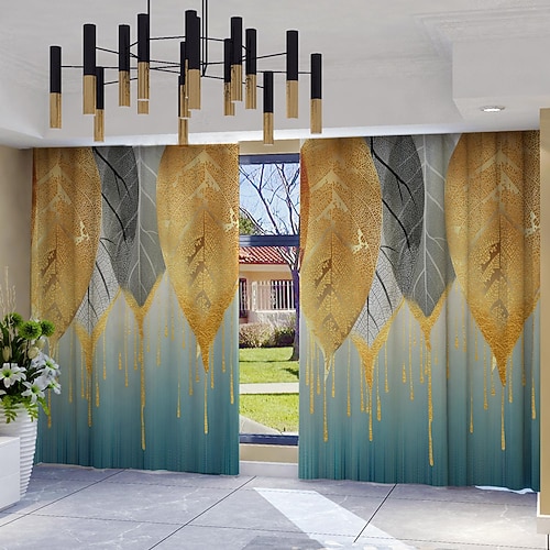 2 tende con motivo geometrico a foglie, pannelli per tende da finestra in poliestere con tasca per asta, tende con motivo botanico moderno, lavabili in lavatrice, adatte per soggiorno, camera da
