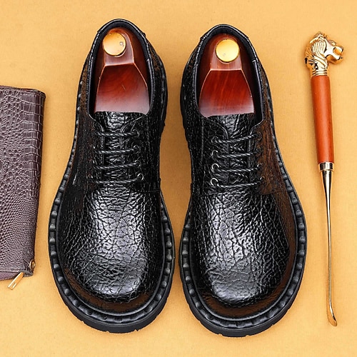 Kaffeebraune strukturierte Derby-Schuhe aus echtem Leder für Herren mit runder Spitze und dicker Sohle, langlebige handgefertigte Abendschuhe für Business und Freizeit