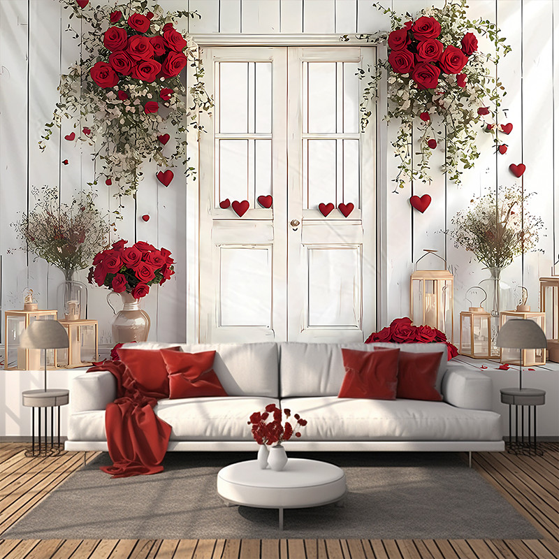 Valentine's Day Tapestry Banners Blanket Rose Love Heart Cute Romantic 3D Party Living Room Shooting Backgrounds Marriage Proposal Decoration Home Decor