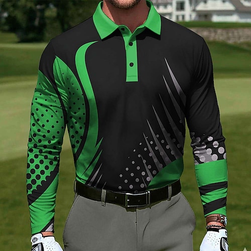 Per uomo Geometrico Golf Polo Sportivi Manica Lunga Magliette polo Bavero Casual All'aperto Athleisure Abbigliamento quotidiano Stampa 3D Bottoni Primavera Autunno Blu Giallo Rosso
