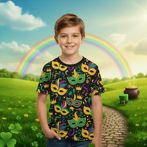 Karnival Jungen 3D Grafik Maske Karneval T-Shirt Kurzarm 3D-Druck Sommer Frühling Sport Mode Streetwear Kinder 4-12 Jahre Rundhalsausschnitt Lässig Täglich Outdoor Normale Passform
