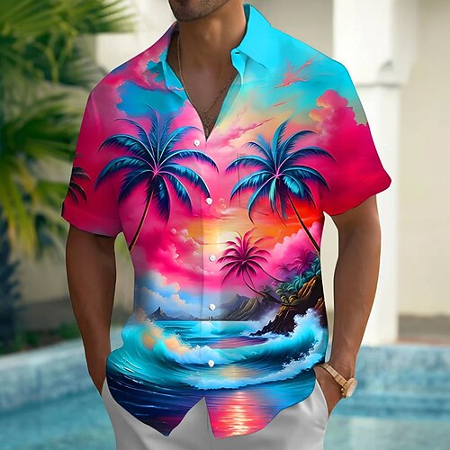 Per uomo Camicia camicia di lino Camicia da spiaggia Camicia hawaiana Albero di cocco Esterno Strada Nero Rosa Verde Grigio Maniche corte Collo ripiegabile Estate Primavera Abbigliamento Stampa