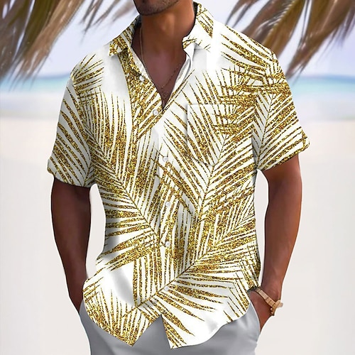 Per uomo Foglia di palma Palma di Cocco Piante Tropicali Camicia hawaiana estiva Camicia con Bottoni Camicia Aloha Manica Corta Hawaiano Vacanza Estate Primavera Collo ripiegato Stampa 3D camicie con