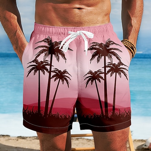 Per uomo Albero di Cocco Colore sfumato Piante Tropicali Costumi da bagno Pantaloncini da mare Pantaloncini da Surf Misura del girovita medio Hawaiano Vacanza al Mare Tasche Laterali fodera in rete