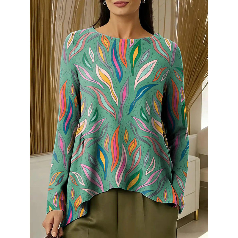 Women's Tunic T Shirt Floral Graphic Elegant Stylish Basic Long Sleeve Crew Neck Long Tops Daily Pink Orange Green Beige Spring Fall Winter
