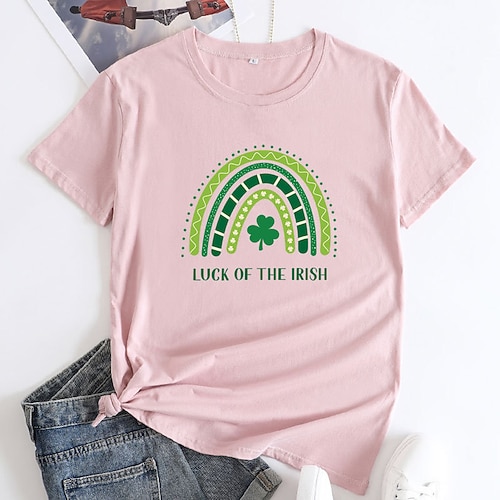 Per donna maglietta Cotone Arcobaleno Trifoglio Festa di San Patrizio Informale Nero Bianco Giallo Stampa Manica corta Di tendenza Rotonda Standard Primavera estate