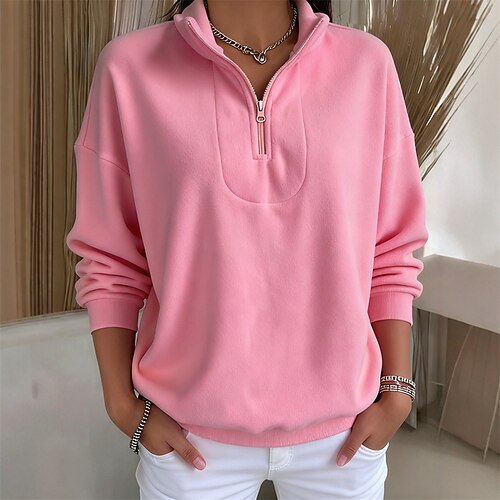 Per donna Felpa Pullover Semplice Elegante Caldo Moda Manica Lunga Collo Alto Top Regolari Casa Lavoro Streetwear Patchwork Mezza cerniera Blu chiaro Nero Giallo Rosa Viola Autunno Inverno