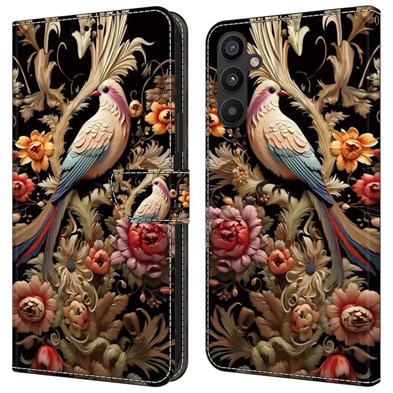 Samsung Galaxy A35 5G Fodral Konstläder Mönster Magnetisk - Blomma och Fågel