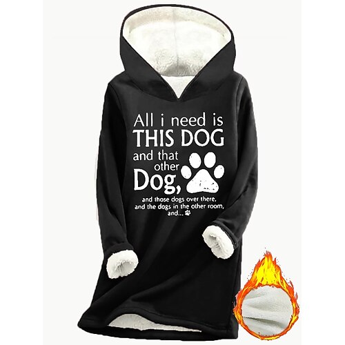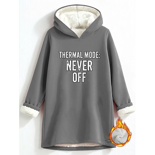Per donna Felpa con cappuccio Grafico Lettera Caldo Pile Sherpa Manica Lunga Con Cappuccio Top lunghi Streetwear Abbigliamento Quotidiano Casuale Stampato Nero Rosa Grigio Autunno Inverno