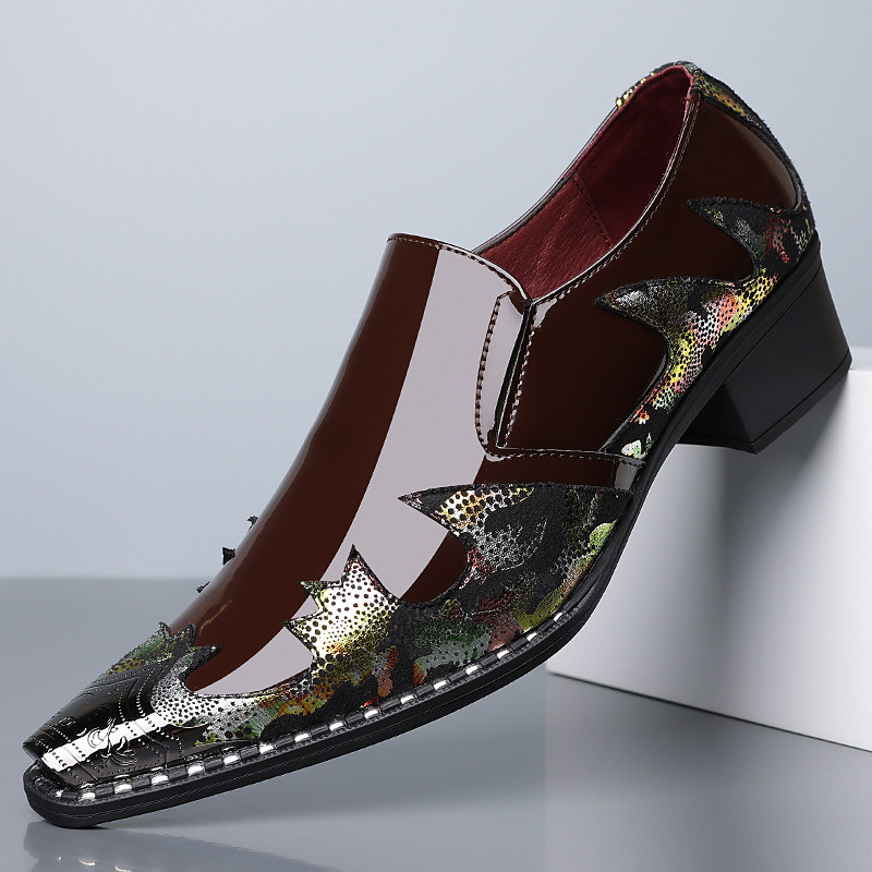 Men's Faux Leather Artistic Wedding Shoes – Black and Multicolor Crocodile Print with Unique Detailing, Bold and Creative Shoes for Weddings and Special Events