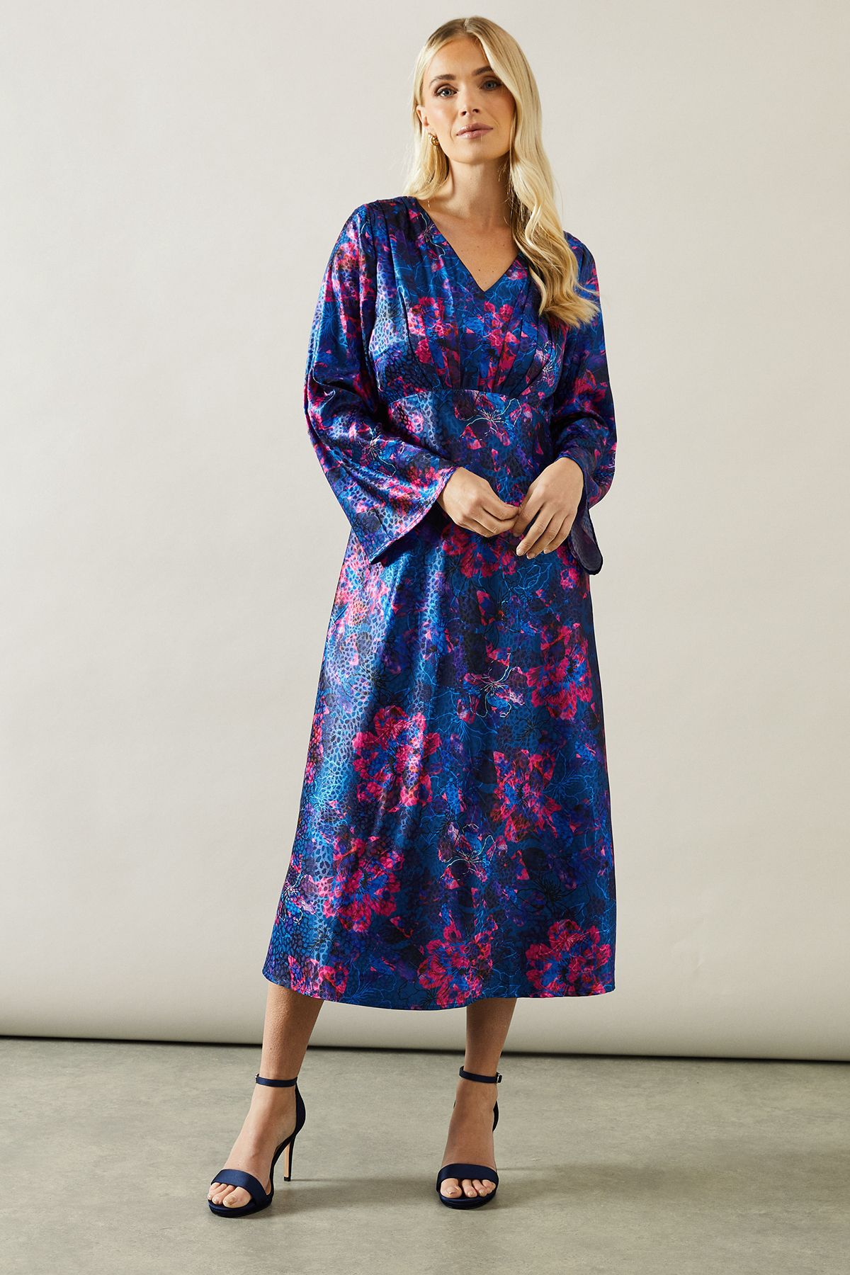 Warehouse Womens Cross Front Georgette And Marl Suiting Midi Dress - Dark Blue - Size 14 UK | Warehouse Sale | Discount Designer Brands