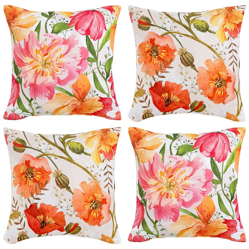Flowers Double Side Pillow Cover 4PC Soft Decorative Square Cushion Case Pillowcase for Bedroom Livingroom Sofa Couch Chair