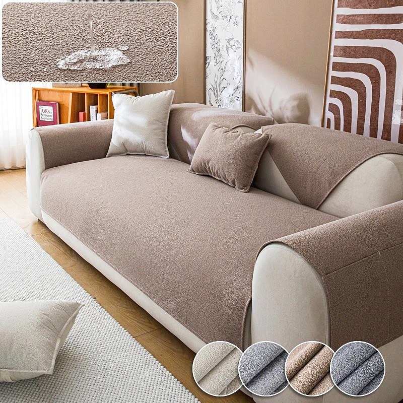 Luxury Thick Autumn Winter Sofa Cover, Anti-Slip, Anti-Scratch Comfort Cotton Velvet, 3D Jacquard Sofa Cushion Protector with Backrest Cloth