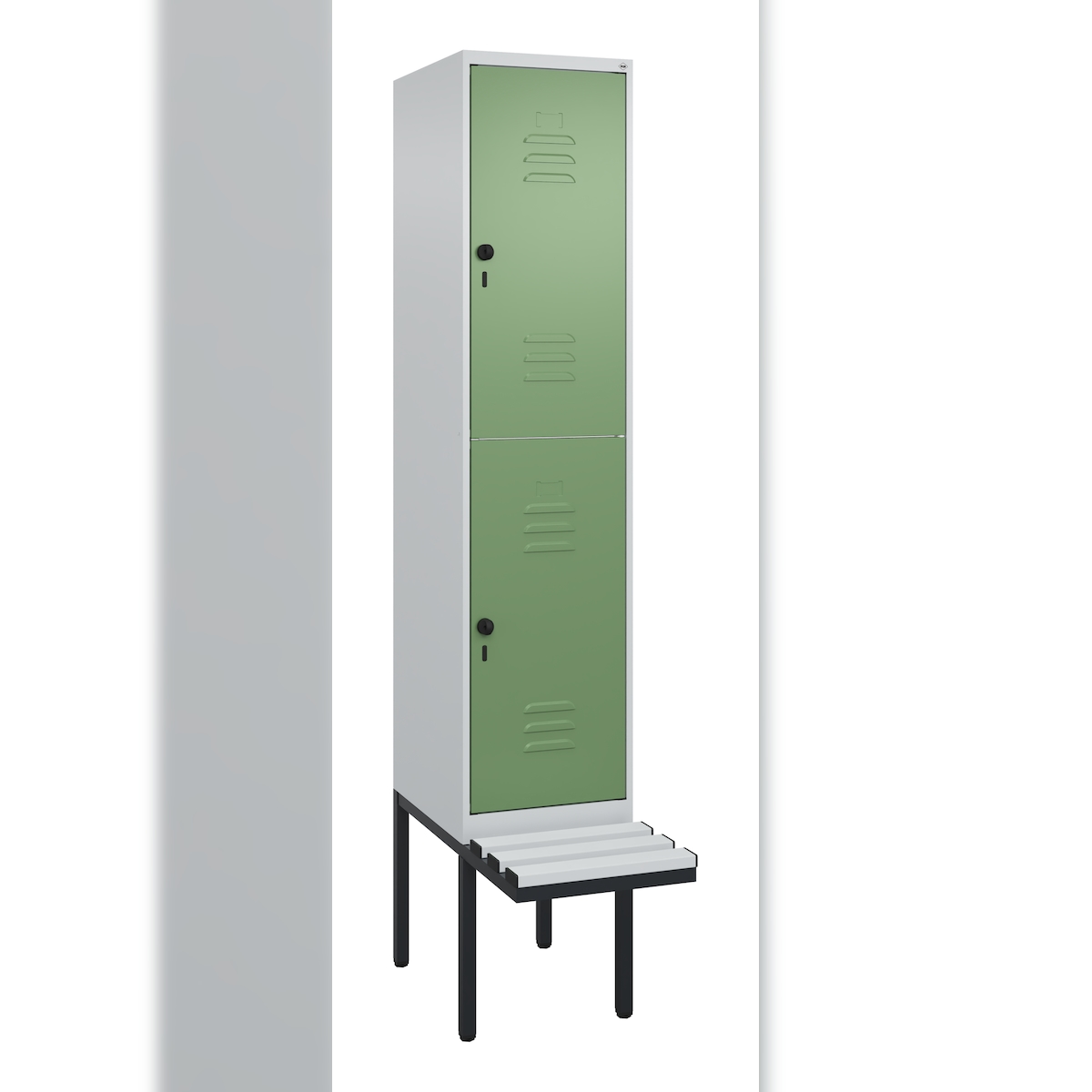 C+P Z-Spind Classic PLUS, Kunststoff untergebaute Sitzbank, 2 Abteile, HxBxT 212x40x82cm, Zylinderschloss, Hellgrau/Resedagrün von PROREGAL