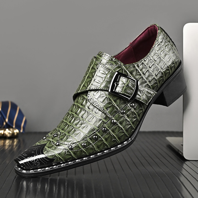 Men's Luxury Red Crocodile Faux Leather Shoes - Bold Style with Stud Detail, Perfect for Parties, Weddings and Formal Occasions