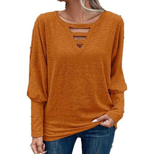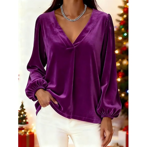 Natale Per donna Blusa Tinta unica Elegante Essenziale Casual Manica Lunga Scollo a V Top Regolari Quotidiano Ferie Blu Vino Viola Verde Primavera Autunno Inverno