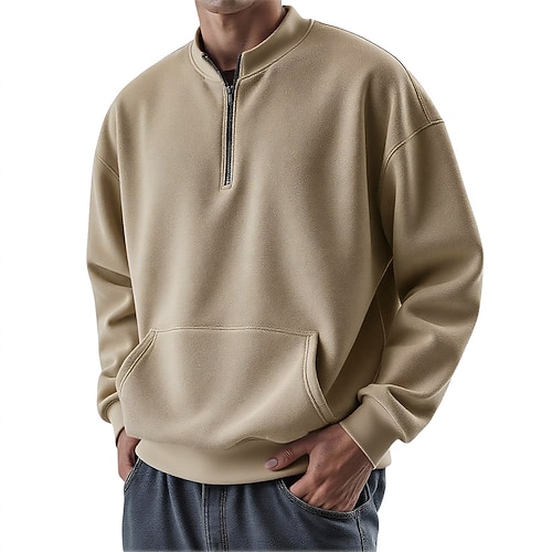 Per uomo Maglia Felpa con zip corta Bianco Vino Blu Viola Verde Mezza zip Semplice Tasca Sport Outdoor Quotidiano Ferie Poliestere Streetwear Essenziale Casual Primavera Autunno Abbigliamento Felpe
