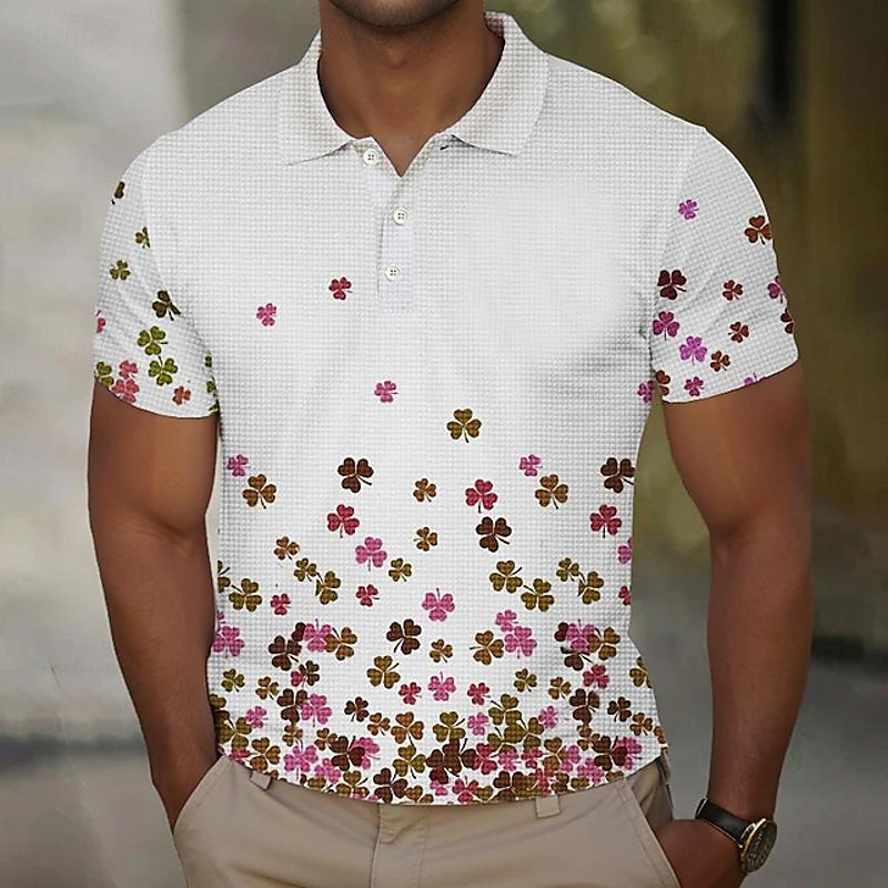 St. Patrick Men's Saint Patrick Day Waffle Polo Shirts Polo Polo Shirts Short Sleeve Polo Shirts Turndown Casual Vacation St.Patrick's Day Street Festival 3D Print Summer Red Purple Green