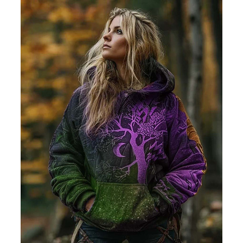 Women's Pullover Hoodie Sweatshirt Graphic Tribal Casual Long Sleeve Hooded Regular Tops Party Evening Wear Street Dailywear Dark Gray Spring Fall Winter