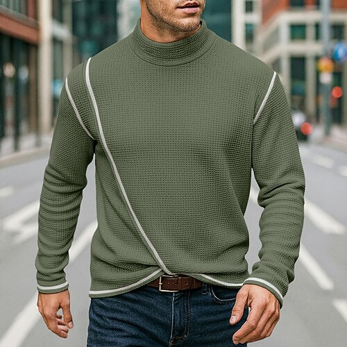Per uomo Maglione a collo alto Felpa Pullover Maglione Maglione lavorato a maglia Maglione a collo alto da uomo A coste Cavi Maglia Retrò Alla moda Color Block A collo alto Bordo ricamato Maglioni