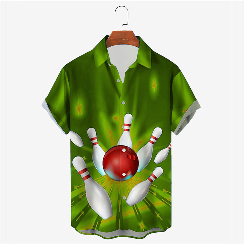 Men's Graphic Prints Bowling Ball Shirt Short Sleeves Shirt Turndown Outdoor Street White Green Black Yellow Red Blue Print Button-Down Clothing Apparel Designer Casual Soft Breathable