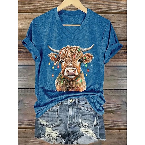 T-shirt da donna grafica animale mucca vintage elegante classica maniche corte scollo a V top regolari quotidiani stampa blu nero bianco rosa rosso estate primavera autunno inverno