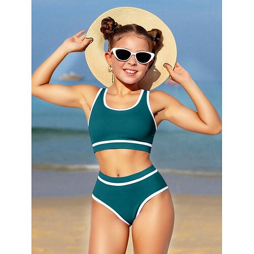 Bambini Ragazze Costume da bagno All'aperto Spiaggia Blocco di colori Vacanza Sport Moda Costumi da bagno Dai 4 anni in su Estate Blu Nero