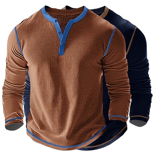 Per uomo Maglietta Maglia Henley Maglietta a Maglia Waffle Camicia a Maniche Lunghe Manica Lunga Blocco di colori Tinta unita Moda Designer Essenziale 2 Pezzi Confezione multipla Henley Vacanza