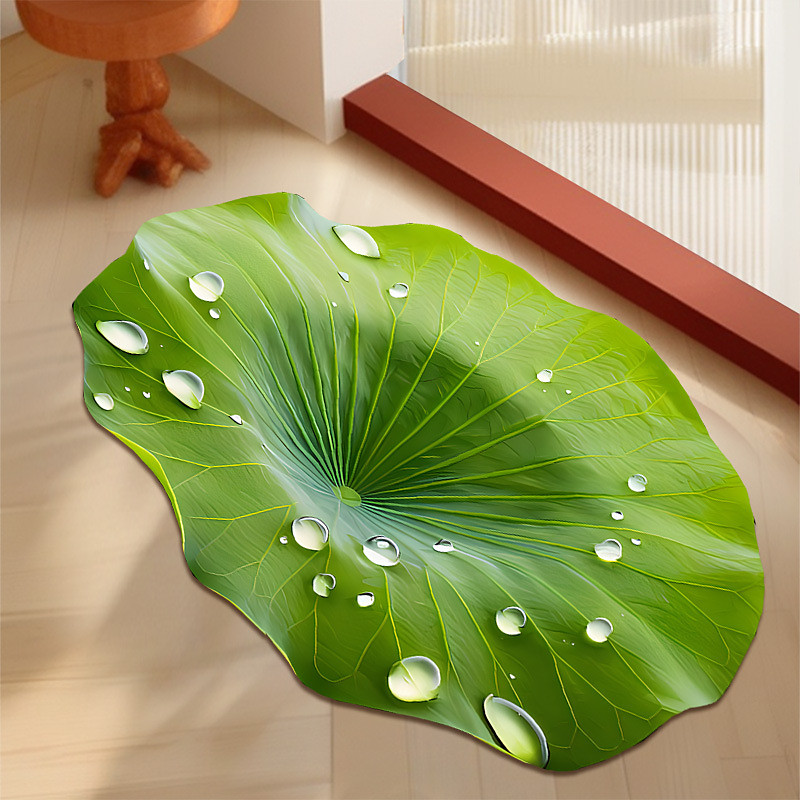 Realistic Lotus Leaf Shaped Door Mat For Entryway Soft Absorbent Non-Slip Machine Washable Floor Rug Stain Resistant Durable Easy Care Indoor Bathroom Decorative Home Accent