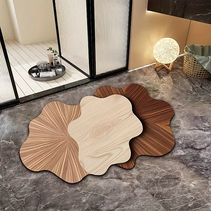 Doormat Faux Wood Grain Irregular Shaped Entryway Rug Soft Absorbent Non-Slip Quick Dry Floor Mat Machine Washable Home Decor Comfort Foot Pad