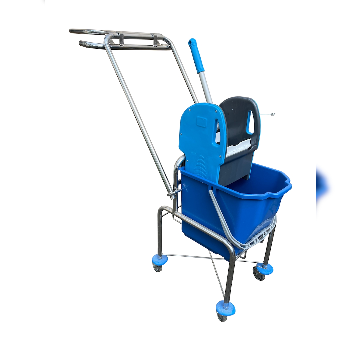 CleanSV Reinigungswagen hoch 18 Liter Eimer, Müllsackhalter, Presse, Deichsel