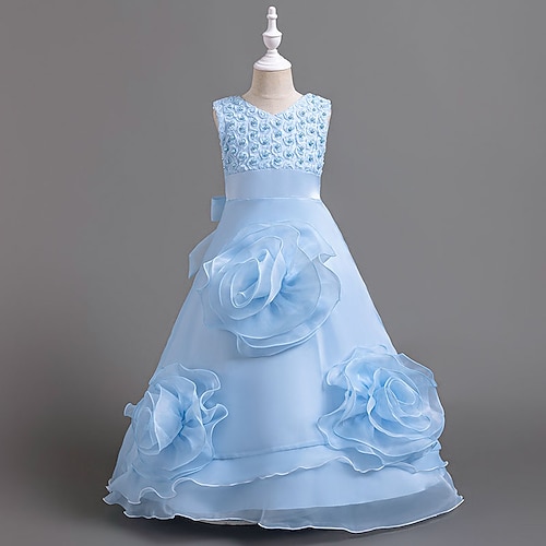 Blumenmädchenkleid Mädchen Formelle Kleidung Hochzeitskleidung Party Hochzeit Formell Formell Prinzessin Kleid für die Erstkommunion Patchwork Netz Blumen Ärmellos Rundhalsausschnitt Weiß Rosa Ab 4