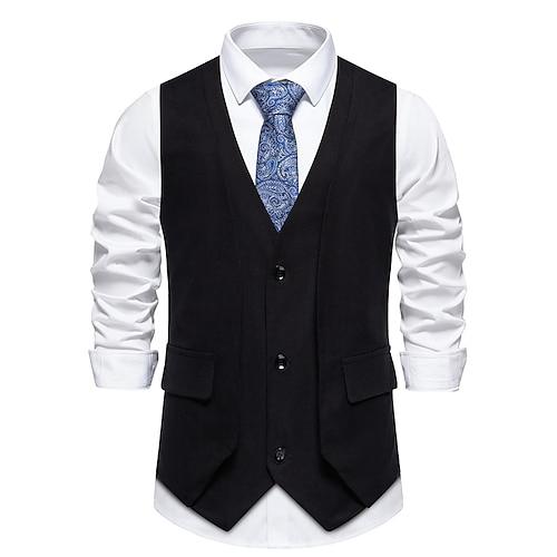 Per uomo Gilet Da tutti i giorni Da mare Per uscire Vintage Di tendenza Primavera Autunno Pulsante Poliestere Comodo Liscio Monopetto A V Standard Nero Cachi Caffè Gilet
