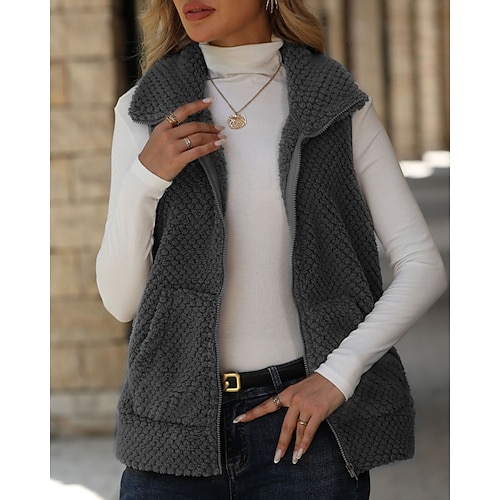 Per donna Gilet in pile Gilet Caldo Confortevole Cerniera Tasca Casual Semplice Vacanza Casa Abbigliamento quotidiano Uscire Regolare Collo ripiegato Vestibilità comoda Senza Maniche Capispalla Cachi