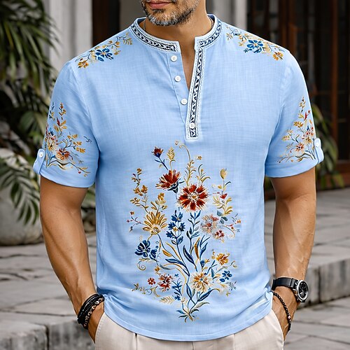 Per uomo Stampa Floreale Etnico Fiori Camicia Camicia button-down Manica Corta Vintage Retrò Matrimonio Ferie Casual Quotidiano Estate Primavera Colletto Mao Colletto Henley Stampa 3D Camicia tipo