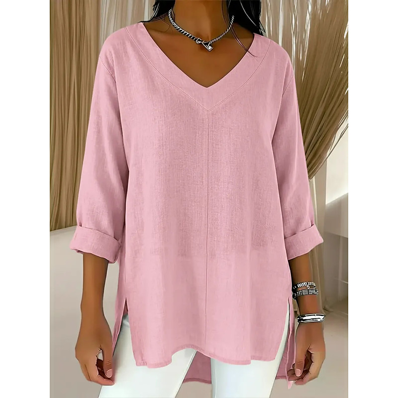 Women's Blouse Solid Color Elegant Stylish Basic Long Sleeve V Neck Long Tops Daily Work Blue Black White Pink Red Summer Spring Fall Winter