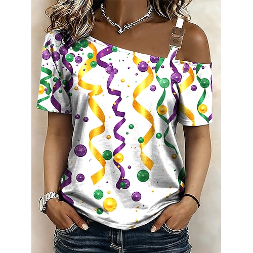 Martedì grasso Per donna Maglietta Grafico Tropicale Hawaiano Elegante Manica Corta Collo asimmetrico Top corti Quotidiano Sportivo Uscire Bianco / Nero Bianco Giallo Verde chiaro Viola Estate