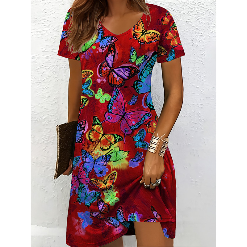 Women's Mini Dress T Shirt Dress Tee Dress A Line Dress Summer Dress Vacation Casual Holiday Regular Fit Floral Graphic Animal Short Sleeve Crew Neck Yellow Red Blue Purple Summer Spring