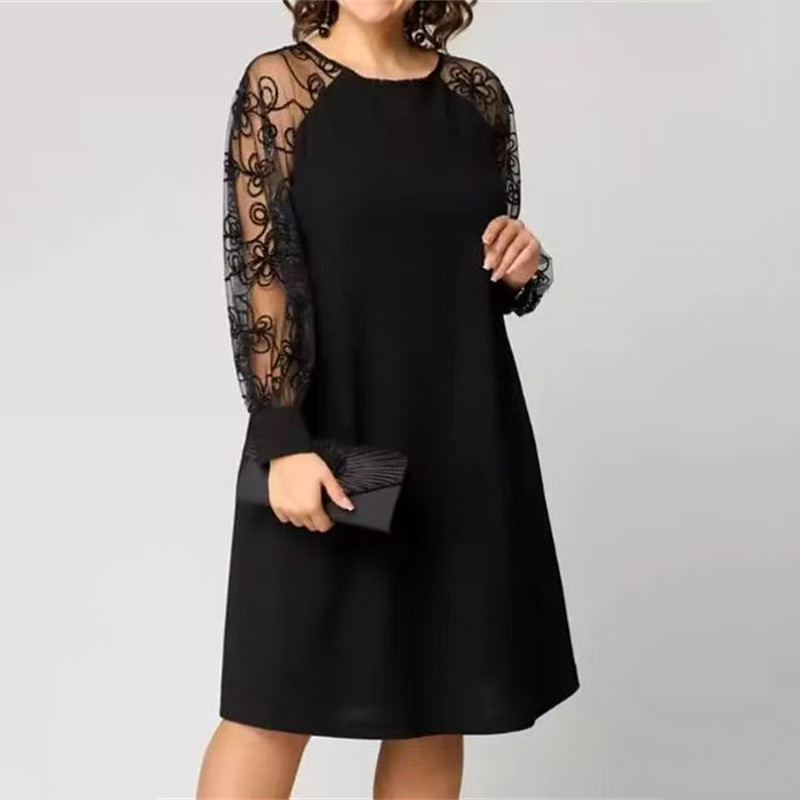 Women's Mini Dress Black Dress Lace Dress Casual Dress Cocktail Dress Elegant Fashion Outdoor Holiday Date Regular Fit Plain Long Sleeve Crew Neck Black Spring Autumn