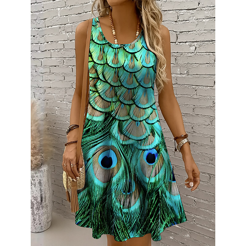 Women's Mini Dress Sundress A Line Dress Off The Shoulder Dress Vacation Casual Boho Holiday Beach Regular Fit Graphic Animal Sleeveless Crew Neck Yellow Red Blue Purple Summer Spring