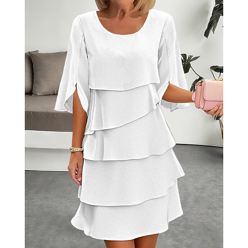Women's Mini Dress Chiffon Dress Tiered Dress Fashion Modern Outdoor Holiday Going out Regular Fit Plain Half Sleeve Crew Neck Black White Pink Blue Spring Fall