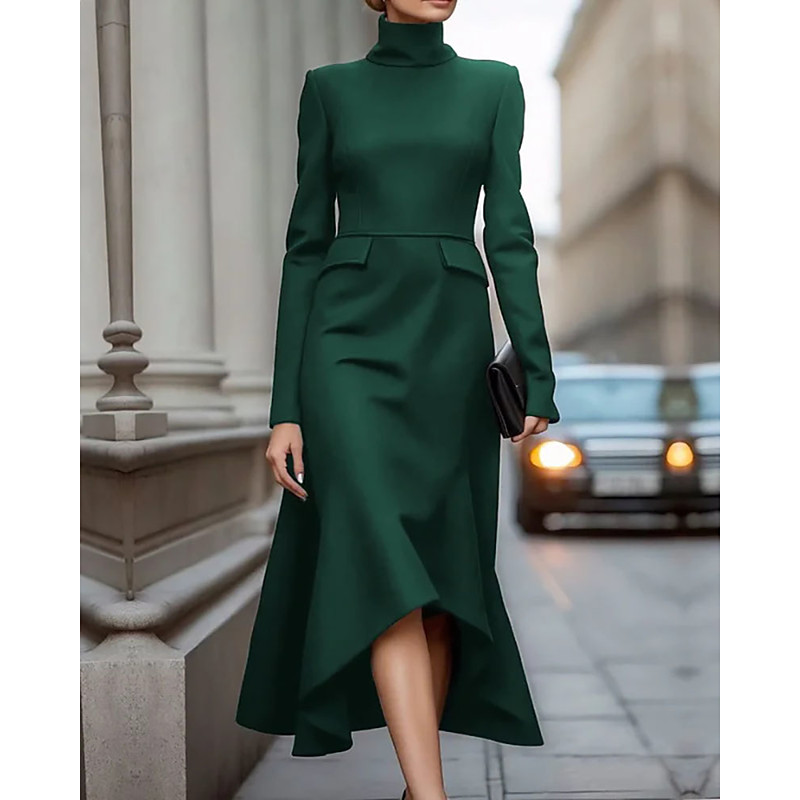 Women's Midi Dress Black Dress Prom Dress Party Dress Elegant Fashion Modern Party Special Occasion Evening Party Regular Fit Plain Long Sleeve Turtleneck Black Wine Green Summer Spring Fall Winter