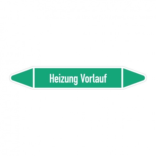 Aufkleber I RKZ-Etikett Heizung Vorlauf,DIN 2403,grün/weiß,für Ø 60-90mm,310x52mm,3/Bogen