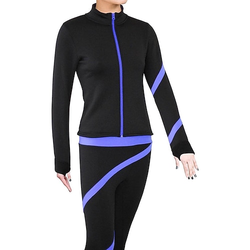 giacca in pile per pattinaggio artistico, giacca da pattinaggio sul ghiaccio da donna e da ragazza, top nero elastico, abbigliamento da pattinaggio per competizione, termico, caldo, con